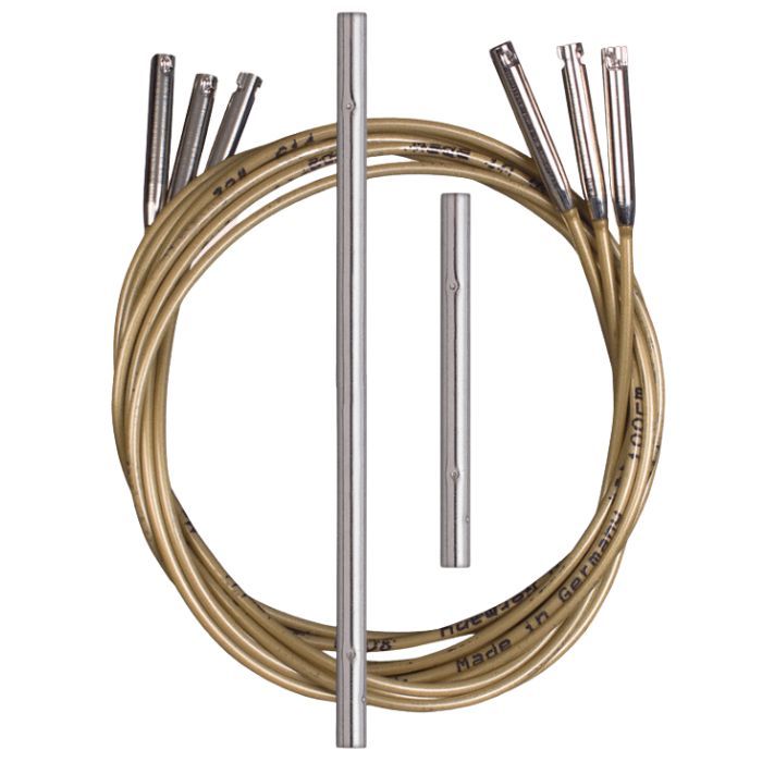 The flexible golden coloured cable is pleasantly soft when knitting. The seam between the cable and the needle is quite smooth and unnoticeable, guaranteeing a smooth running of the thread. addiClick Basic's cable is nylon and brass which is coated with nickel-free white bronze. This guarantees a reliable and durable cable.