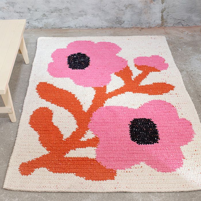 This beautifully patterned rug brings personality to your interior. Anemone crochet rug is made of Lankava Frotee Loopy Craft Yarn.