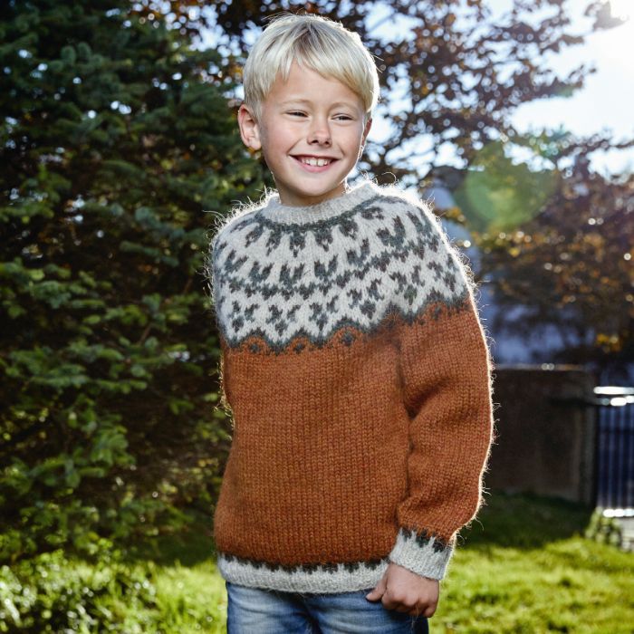 Védís Jónsdóttirin suunnitteleman lasten Verso-islantilaisneuleen ohje lankojen ostajalle veloituksetta! Tämä perinteinen islantilainen villapaita neulotaan alhaalta ylös kaksinkertaisella Plötulopi-hahtuvalangalla, joka on 100 % islantilaista villaa.