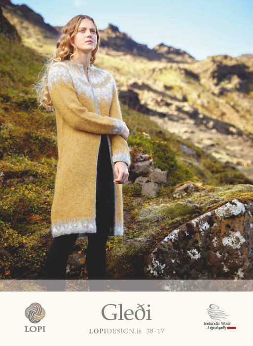 Védís Jónsdóttirin suunnittelema näyttävä islantilaisneuletakki. Tämä pitkä, naisellinen neuletakki neulotaan Plötulopi-villalangasta, joka on 100 % islantilaista villaa.