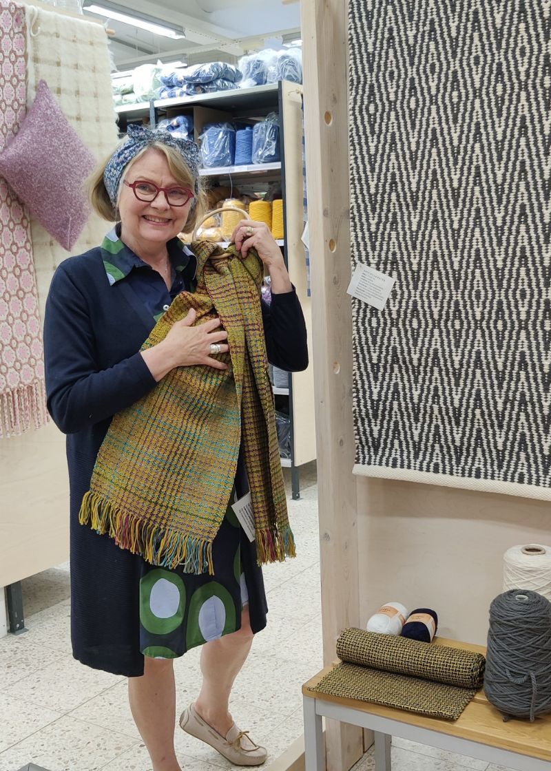 Tutustutaan kudonnan artesaani, tekstiilitaiteilija Nina Hiltusen opastuksella Ashfordin kokoon taittuviin pöytä- ja sylikangaspuihin.