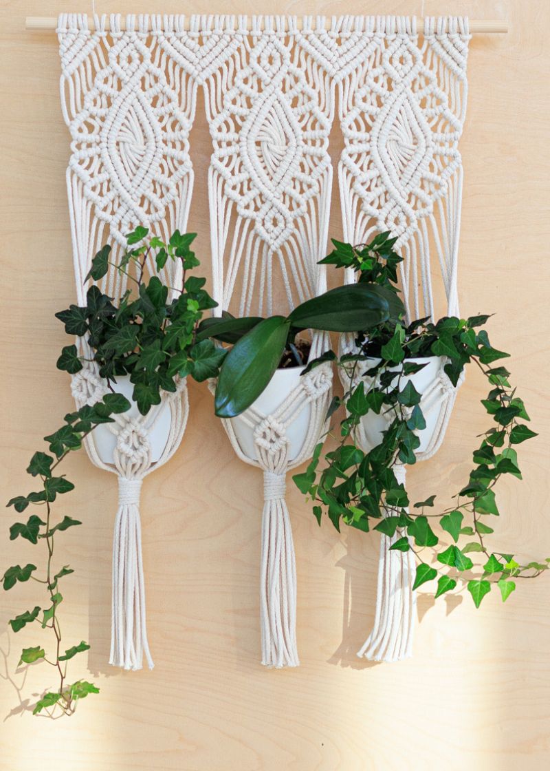Monipuolinen makramee taipuu tekniikkana moneen eri käyttötarkoitukseen. Seinävaatteiden lisäksi makramee-tekniikalla luot niin koreja, kasseja, mattoja kuin verhojakin!