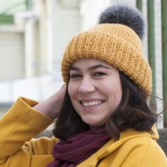 Kaunis tupsu neulepipoon kiinnitettäväksi.