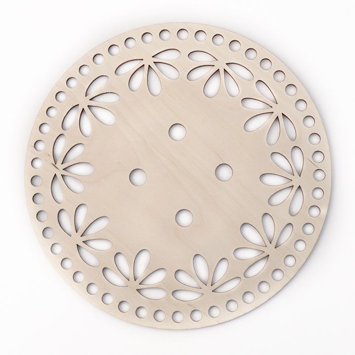 Käsittelemättömästä 3 mm puuvanerista laaserleikattu aihio virkkaus- ja makrameetöihin. Ulkoreunalla olevien reikien läpimitta 8mm.