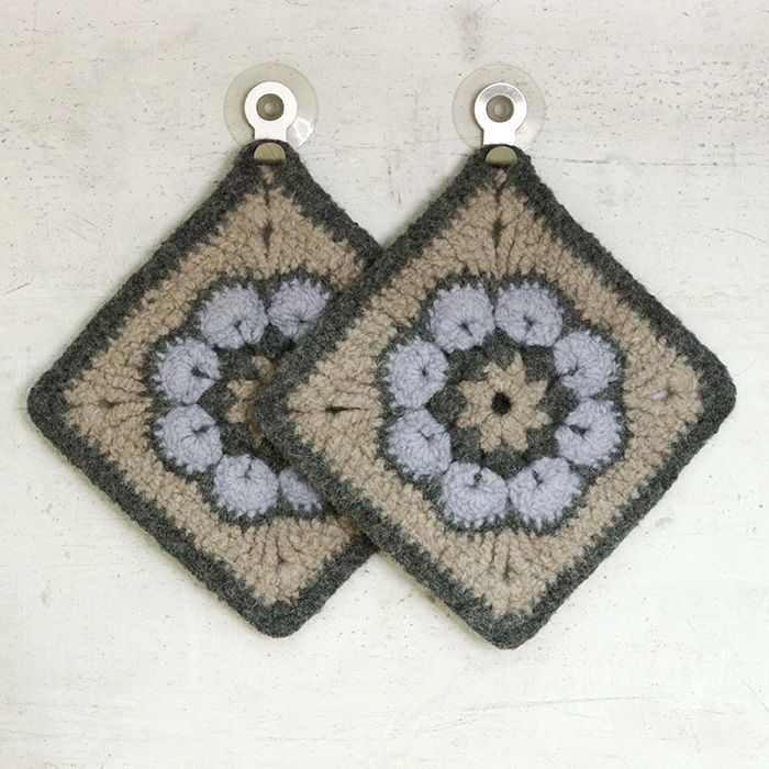 Koko: N. 21x21 cm (ennen huovutusta n. 28x28 cm).