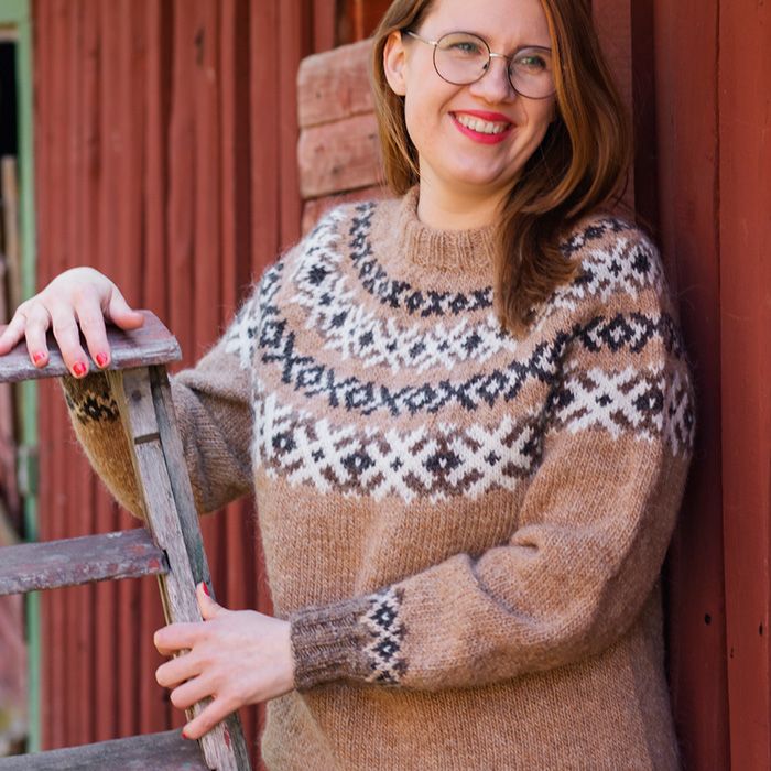 Halla-villapaita on kaunis ja näyttävä kaarrokeneule, jonka ohjeesta löydät silmukkamäärät jopa kuudelle eri koolle. Istex Lettlopi -islanninvillalangasta neulottu neule on lämmin ja villan kosteuttasiirtävän ja hengittävän ominaisuuden ansiosta neule sopii hyvin myös ulkoiluun. Halla-villapaidan kirjoneulotut kuviot on helppo toteuttaa, sillä puikolla on samanaikaisesti korkeintaan kahta eriväristä lankaa.