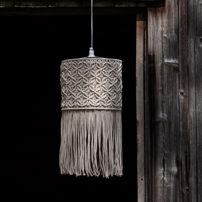 Helmi-makrameevalaisin on upea lampunvarjostin, joka tuo valoa ja ilmettä sisustukseen. Lankavan Pamela -punoskuteesta solmeillun valaisimen kaunis pintakuvio toteutetaan viistoon suunnatuilla kohosolmuilla. Helmi-makrameevalaisimen ohjeesta löydät lankaluvut kolmelle eri halkaisijalle.