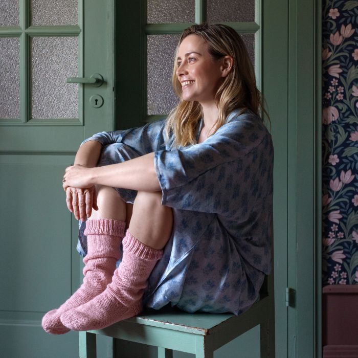 Näyttelijä Iina Kuustosen suunnittelemat yksinkertaiset, aloittelijaystävälliset villasukat valmistuvat helposti Lysti-sukkalangasta.