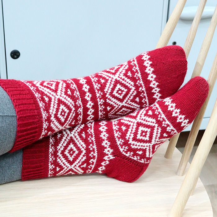 Nämä tyylikkäät kirjoneulotut Joulusukat neulotaan Alizen Superwash-villalangasta. Ohjeessa on selkeät ruutupiirrokset kauniin kuvion toteuttamiseksi. Alize Superwash-langasta neulotut sukat ovat miellyttävän ohuet ja hyvin kulutusta kestävät.