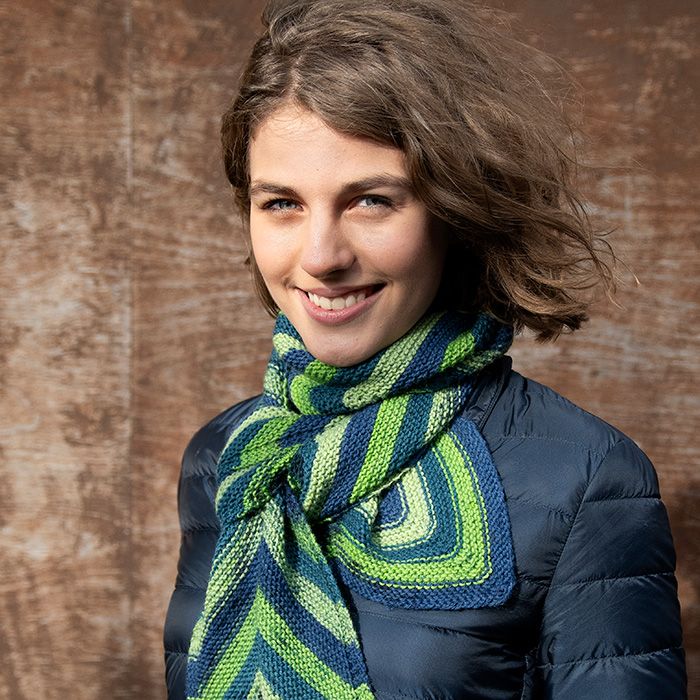 Pitkä Kalanpyrstö-huivi neulotaan kirjavasta Mainio-sukkalangasta. Tällä ohjeella neulot näyttävän värikkään huivin helposti ja vaihtamalla langan väriä saat täysin uudenlaisen huivin!