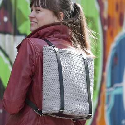 Muodikas Kontti-reppu syntyy pujottelemalla Lankavan Ministeri-ontelokudetta Stafil-muoviverkon ympärille.