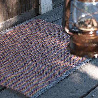 Lilli-ontelokuteesta kudottu kynnysmatto. 4 vartta ja 6 polkusta.