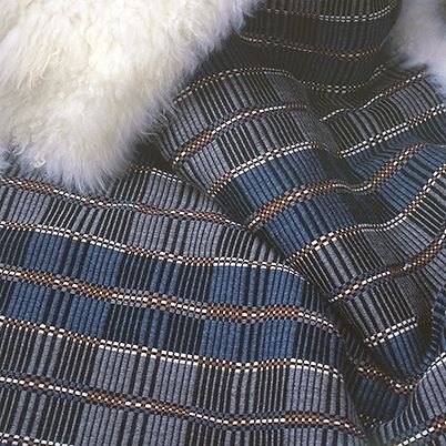 Vanhan pohjalaisen raanun mallista kudottu kangas perinteisiin turkisfällyihin. 4 vartta.