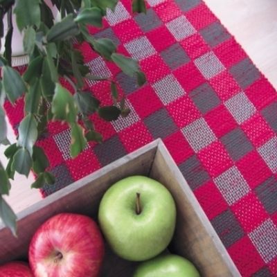 Poppanalla merssi-puuvillalankaloimeen kudottu kuvikasliina. 4 vartta ja 6 polkusta.