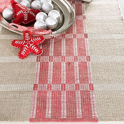 Jouluinen pellavakaitaliina. 4 vartta ja 4 polkusta.