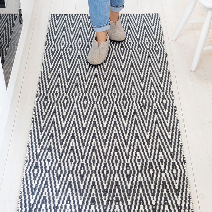 Kuviollinen kuderipsimatto on kudottu Muhku- ja Huopikka-villalangoista. 4 vartta ja 6 polkusta.