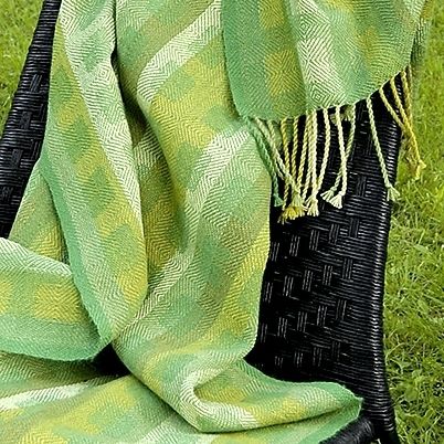 Esito-kampalangasta kudottu kevyt ja värikäs kuviollinen huopa. 7 vartta.