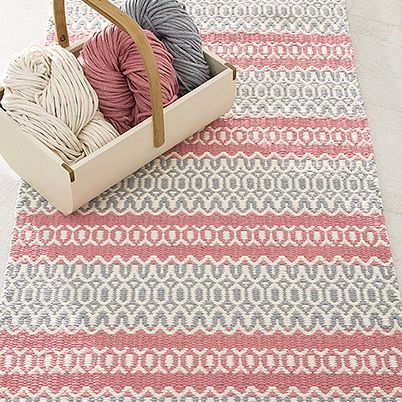 Lilli-ontelokuteesta kudottu ruusukaskuvioinen matto. 4 vartta ja 6 polkusta.