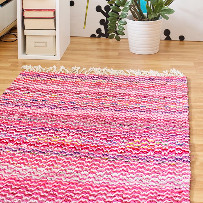Kude/matto 200 g roosaa (12) 200 g punaista (14), 200 g luumunpunaista (13), 200 g terraa (10) puuvillatrikoota (n. 1-1,5 kg/vyyhti), 200 g tummanpunaista paalitrikoota, 1 kg punasävyistä (5) Aino-räsykudetta (100 % kierrätyskangas, n. 1-2 kg/pakkaus, lev. 25 mm) ja 1 kg pinkkiä (31) Lilli ontelokudetta (80 % kierrätyspuuvilla, 20 % polyesteri, 1 kg = n. 220 m, lev. n. 7 mm).
