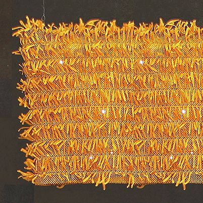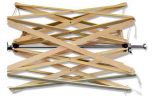 Paperilangoista kalalankaloimeen kudottu nukkapintainen varjostin tuikkuvalosarjalle. 6 vartta ja 4 polkusta.