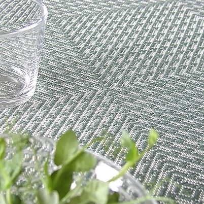 Pöytäliinassa käytetty likaa paremmin hylkivää merseroitua puuvillalankaa. Kudekuviollinen puuvillapöytäliina. 8 vartta ja 10 polkusta
