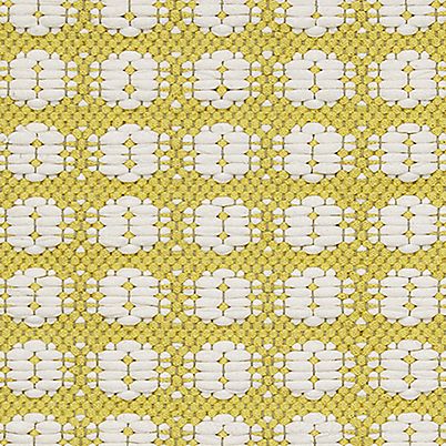 Kude/m² Helmi-maton pohjakuteeksi 0,9 kg keltaista (7) Lankavan Lilli-ontelokudetta, kuviokuteeksi 1 kg valkaisematonta puuvillatrikoota ja päärmeisiin 100 g valkaisematonta (2) Mini-ontelokudetta.