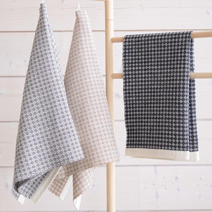 Vohveli-sidoksiset käsipyyhkeet Bockens-puuvillapellavasta. 7 vartta ja polkusta.