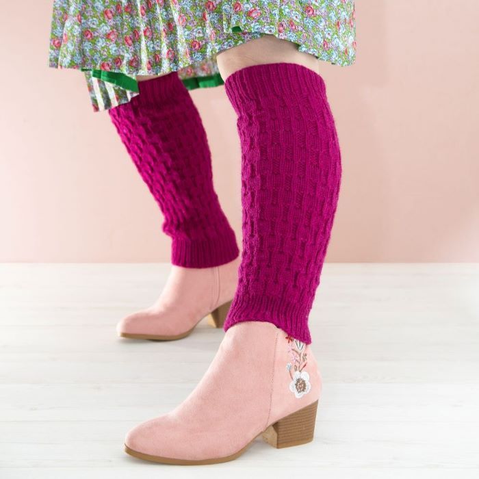 Kauniisti pintaneuleella kuvioidut Lysti-säärystimet neulotaan käyttöä ja pesua kestävästä Lankava Lysti-sukkalangasta.