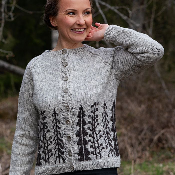 Metsä-villatakin kuvio ja materiaalivalinta toistavat Lee Esselströmin suunnitteleman Metsä-paidan luonnonläheistä maailmaa. Kolmisäikeisestä Lankava Villava -villalangasta neulottu napitettava neule on kaunis, lammin ja käytännöllinen sekä Villavan pehmeän luonteen ansiosta miellyttävä neuloa ja käyttää.