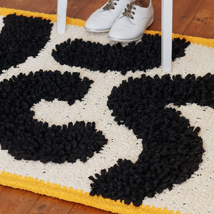 Lanka: Lankava Frotee-pörrökudetta (80 % kierrätyspuuvilla, 20 % polyesteri) 2 kg musta (70), 1,8 kg luonnonvalkoista (52) 0,5 kg keltaista (57).