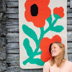 Molla Millsin suunnittelema virkattu tyynynpäällinen näyttävällä kukkakuviolla. Tyyny kirjovirkataan suljetusti neulesilmukoilla.