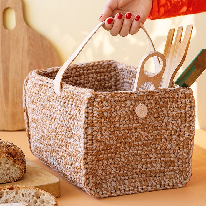 MOI-punoslangasta virkattu Sienikori sopii sisustuselementiksi, säilytykseen tai vaikkapa mukaan metsäretkelle.