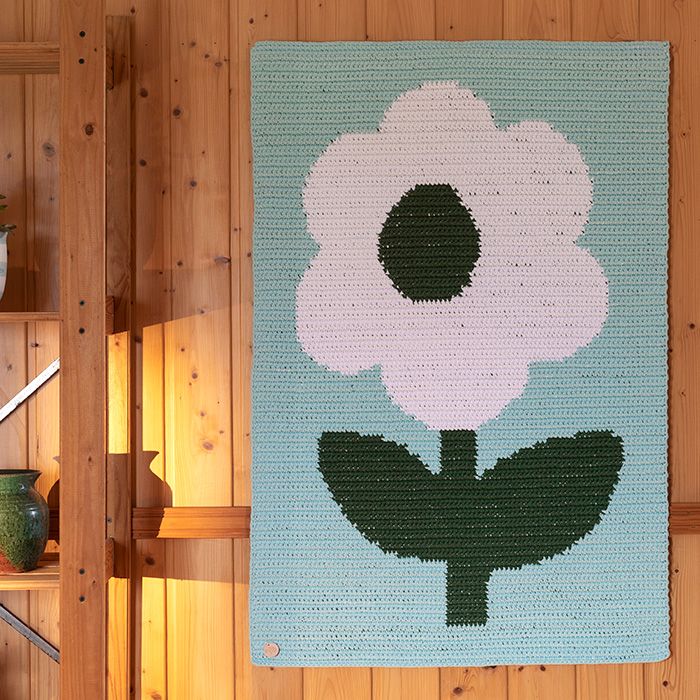 Ihastuttava Vuokko-seinätekstiili virkataan kolmella eri värillä MOI-punoslangasta ruutupiirroksen mukaan. Piristä sisustustasi tällä persoonallisella seinätekstiilillä!