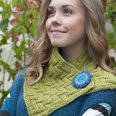 Soljella kiinnitettävä kaulurimainen pintaneulehuivi. Lankavan Silje-lankaa vastaa Sandnes Alpakka.