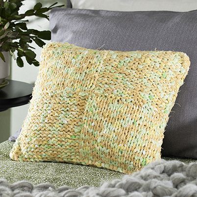 Sisu-räsykuteesta neulottu koristetyyny. Helppo ohje.