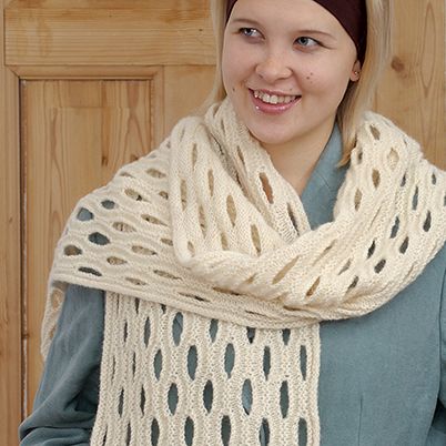 Poikittain neulottava reikähuivi kotimaisesta karstavillalangasta.