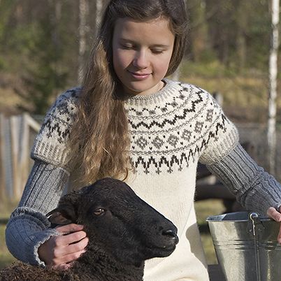 Kotimaisesta karstalangasta neulottu tyttöjen tunika.