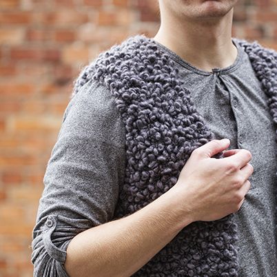 Karitsan turkkia muistuttava, miesten perusliivi Pampula-langasta. Helppo malli.
