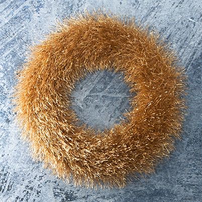 Decofur sim -langasta metallirenkaaseen neulottu voimakkaasti kimaltava ovikranssi.