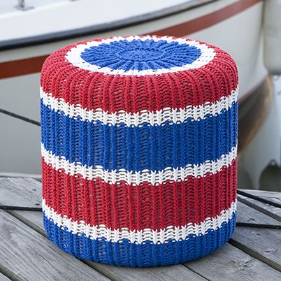 Mini-ontelokuteesta neulottu irtopäällinen sylinterin muotoiseen vaahtomuovirahiin. Helppo malli.