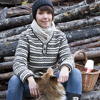 Kotimaisesta karstalangasta neulottu raidallinen jumpperi neulotaan alhaalta ylös.