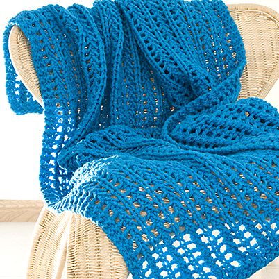 Unni-langasta isoilla puikoilla neulottu kevyt torkkupeitto.