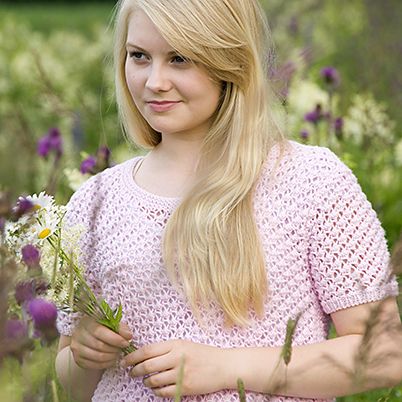 Naturel Cotton -langasta neulottu lyhythihainen pitsineulepusero. Helppo malli.