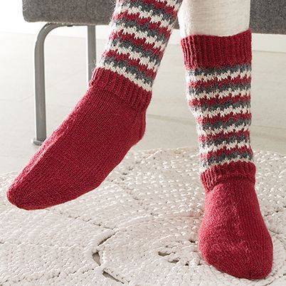 Kolmiväriset jättöneulesukat pehmeästä villa-alpakkalangasta.