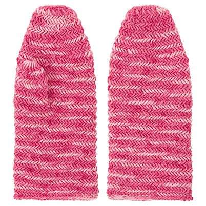 Meleeratusta Lykke-langasta neulotut kinnasneuletta muistuttavat kintaat.