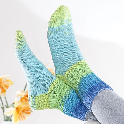 Joustavasta Alize Cotton Gold Batik -langasta neulotut kesäiset perussukat.