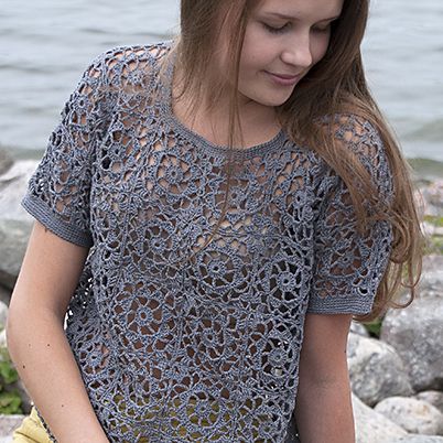 Esito-virkkuulangasta paloina virkattu pitsipusero. Koko L.