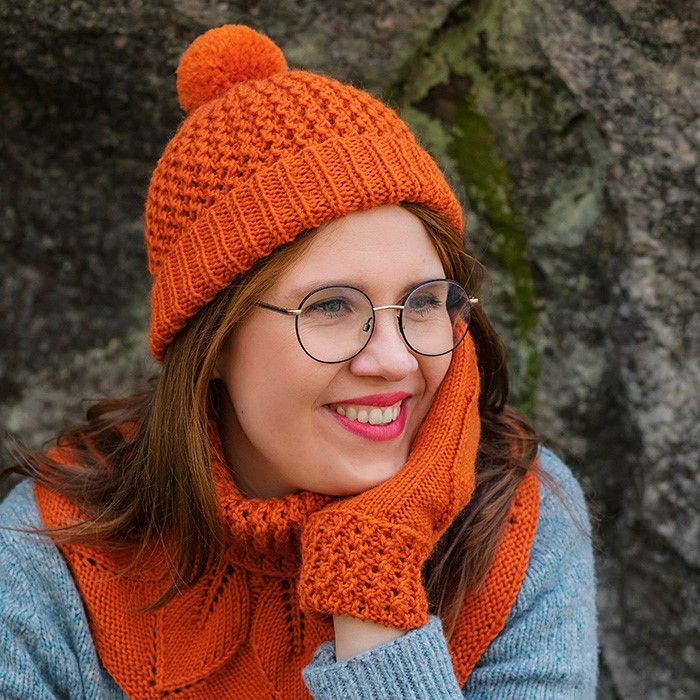 Lankava Lysti-sukkalangasta neulotut Pitsilehti-asusteet lämmittävät läpi talven. Pitsilehti-asusteiden ohjeesta löydät kirjallisen ohjeen ja ruutupiirroksen pipoon, lapasiin sekä kauluriin.