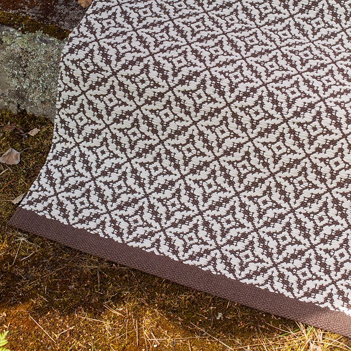 Tyylikäs kudekuviollinen matto kudotaan Lankava Mini- ja Lilli-ontelokuteesta Liina-kalalankaloimeen.