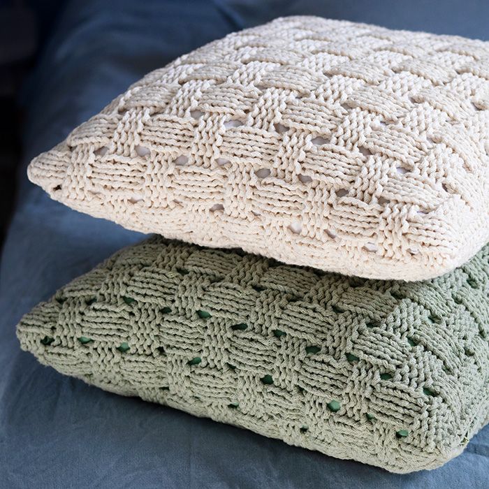 Kaunis pintakuvioitu Punos-tyynynpäällinen neulotaan Lankavan Moi-punoslangasta.